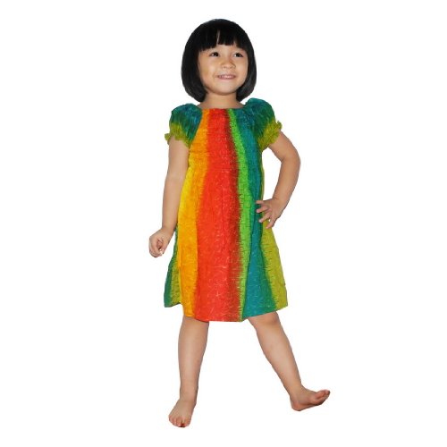 Baby Girls Thai Exotic Gathered / Smocked Bodice Flowing Ruffle Sleeves Summer Dress - Multicolor (Size: 4)